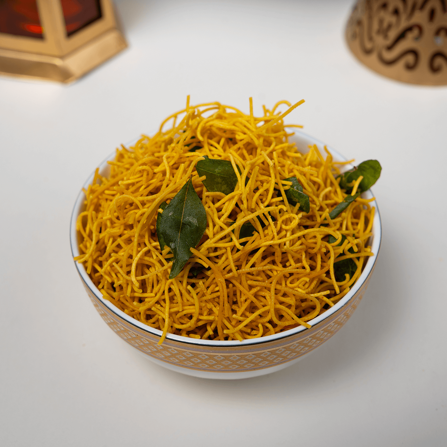 Gram flour, Edible vegetable oil (Groundnut oil), Butter, Rice flour, Salt , Ajwain (1%), Cumin, Asafoetida and Turmeric Powder