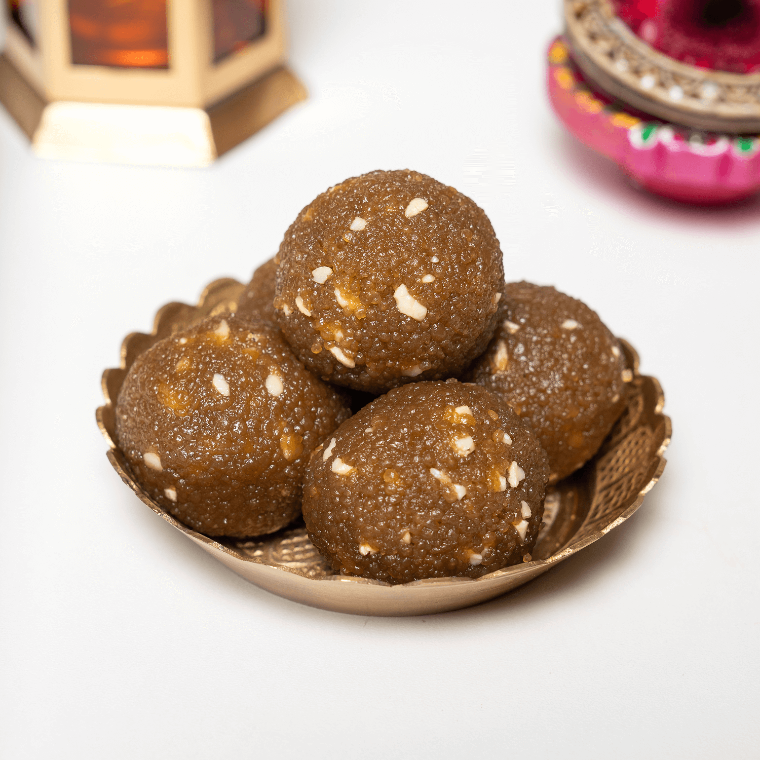 Besan, Ghee, Karupatti, Cashew nuts, Dry grapes, Dry ginger powder